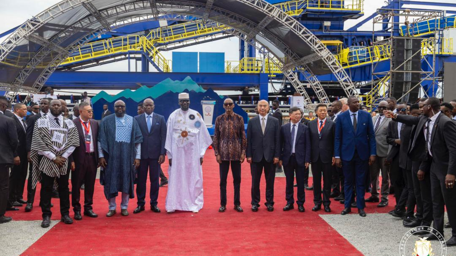 La cérémonie, empreinte de solennité et de symbolisme, s’est déroulée en présence du Président du CNT Dr Dansa KOUROUMA, Premier ministre, Chef du Gouvernement, Amadou Oury BAH, du Ministre Secrétaire général de la Présidence, le Général Amara CAMARA, du Président du Comité stratégique de Simandou également Ministre Directeur de Cabinet de la Présidence, Djiba DIAKITÉ, des membres du Gouvernement du Comité stratégique, du Gouvernement, ainsi que des hauts dirigeants des groupes mondiaux engagés dans le mégaprojet Simandou, notamment Rio Tinto, Winning Consortium Simandou, Weiqiao, Baowu et Chinalco etc.