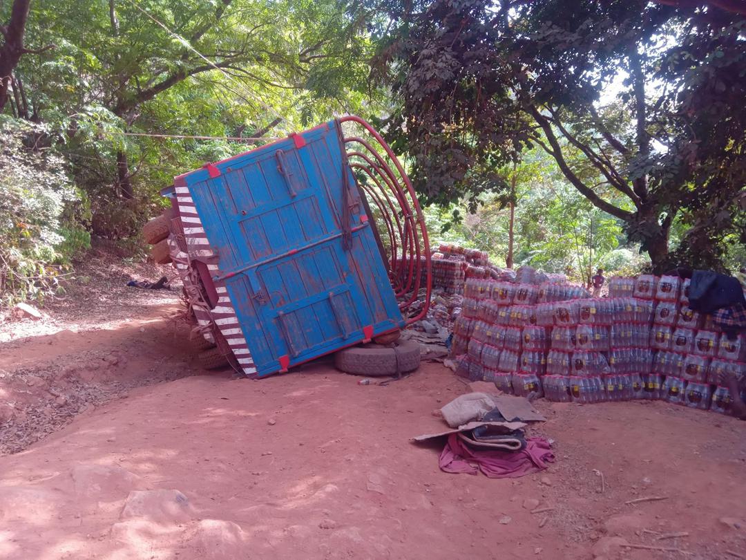 Accident sur la route Gayah–Mali : un camion de jus se renverse